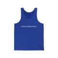This must-have unisex jersey tank top fits like a well-loved favorite. High quality print makes it an ultimate statement shirt for years to come. This item has side seams to provide structural support. All bindings are the same fabric as the rest of the tank. Depending on the color, cotton, polyester, or rayon can appear.